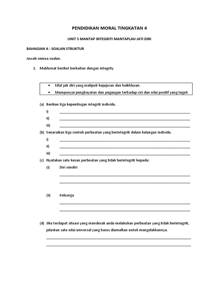 Soalan Pendidikan Moral Tingkatan 1 Doc